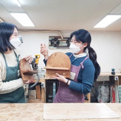 첫눈 오던 날, 친구와 함께 원목 벽 선반 만들기 목공체험~:)