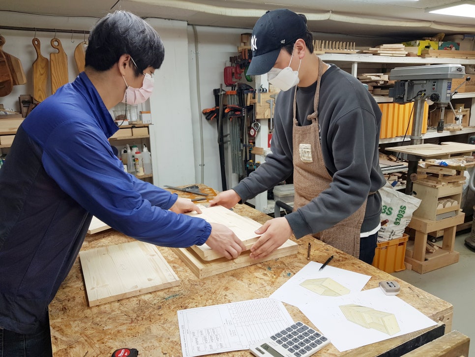 처음 배우시는 목공이라 모든 게 어리둥절~